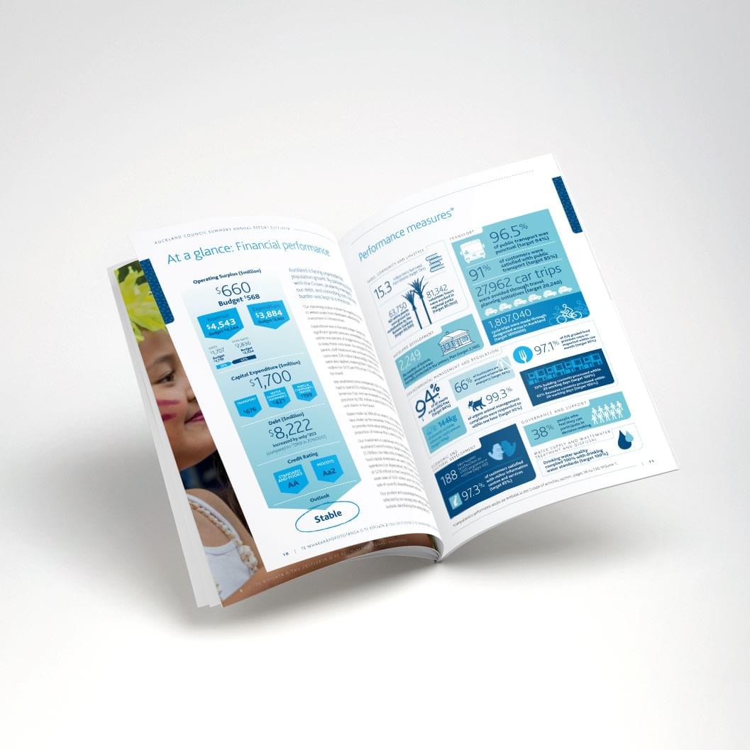 Design, illustration and artwork for Annual Report, Summary Report, Financial Report and 21 local board reports.